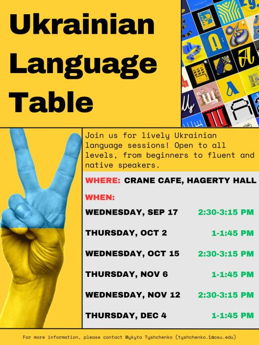 There are several language tables that meet each week during autumn and spring semesters. They are available for students to practice their language skills and receive assistance on homework, and are a great way to get in touch with other students who speak your language of study and network with others in the community!